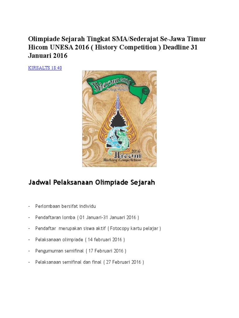 untuk "Soal Olimpiade Sejarah Smp / Contoh Soal Olimpiade Sejarah Sma - Soal Kelasmu - Soal olimpiade sejarah sma dan pembahasannya pdf."